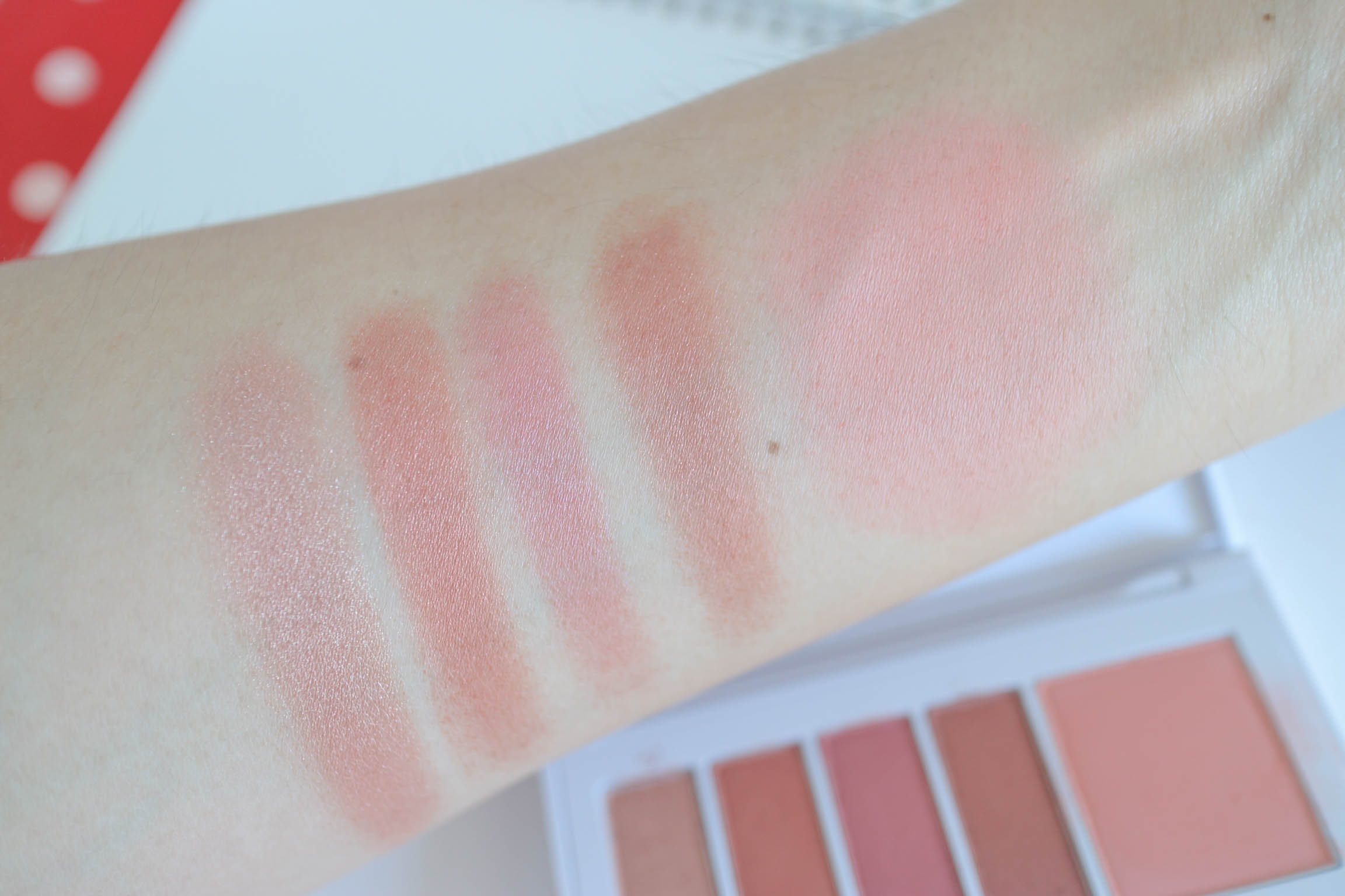 สีปัดแก้มจะเป็นเนื้อด้านๆ Matte นะครับ แต่พวกสี Eyeshadow จะเป็นสีที่มีความเหลือบเล่นแสง