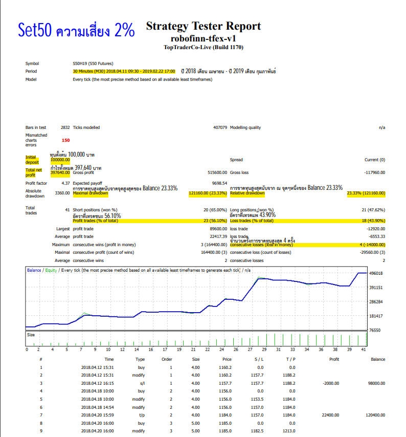 ** ข้อมูลสรุปผล อ้างอิงจากผลทดสอบย้อนหลัง