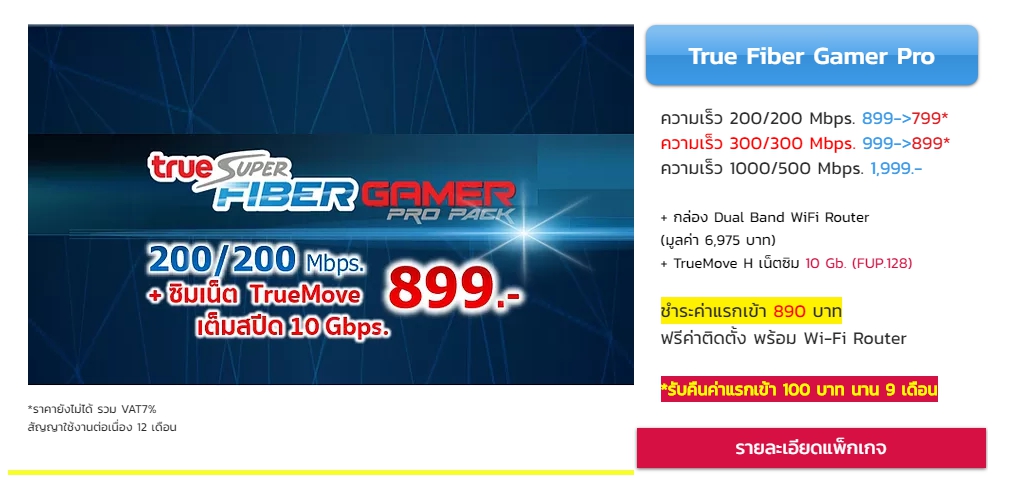 ตอนนี้ผมเพิ่งเปลี่ยนมาใช้โปร True Super Fiber Gamer Pro Pack 899 ความเร็ว 100/100 +ซิมเน็ต 4MB ไม่ลดความเร็ว