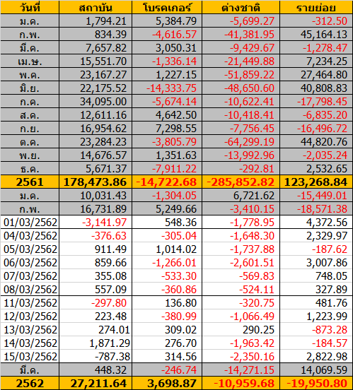 Sinthorn Summary 15/3/2562 : ต่างชาติขายสุทธิ -2,350.16 ลบ.