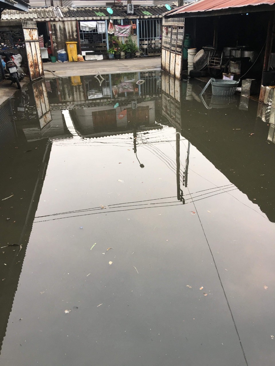 อันนี้คือรูปของวันนี้ แค่ฝนตกแปปเดียวนะครับ บนถนนแห้งมาก บ้านอื่นไม่มีใครได้รับความเดือดร้อน มีแต่บ้านผมหลังเดียว
