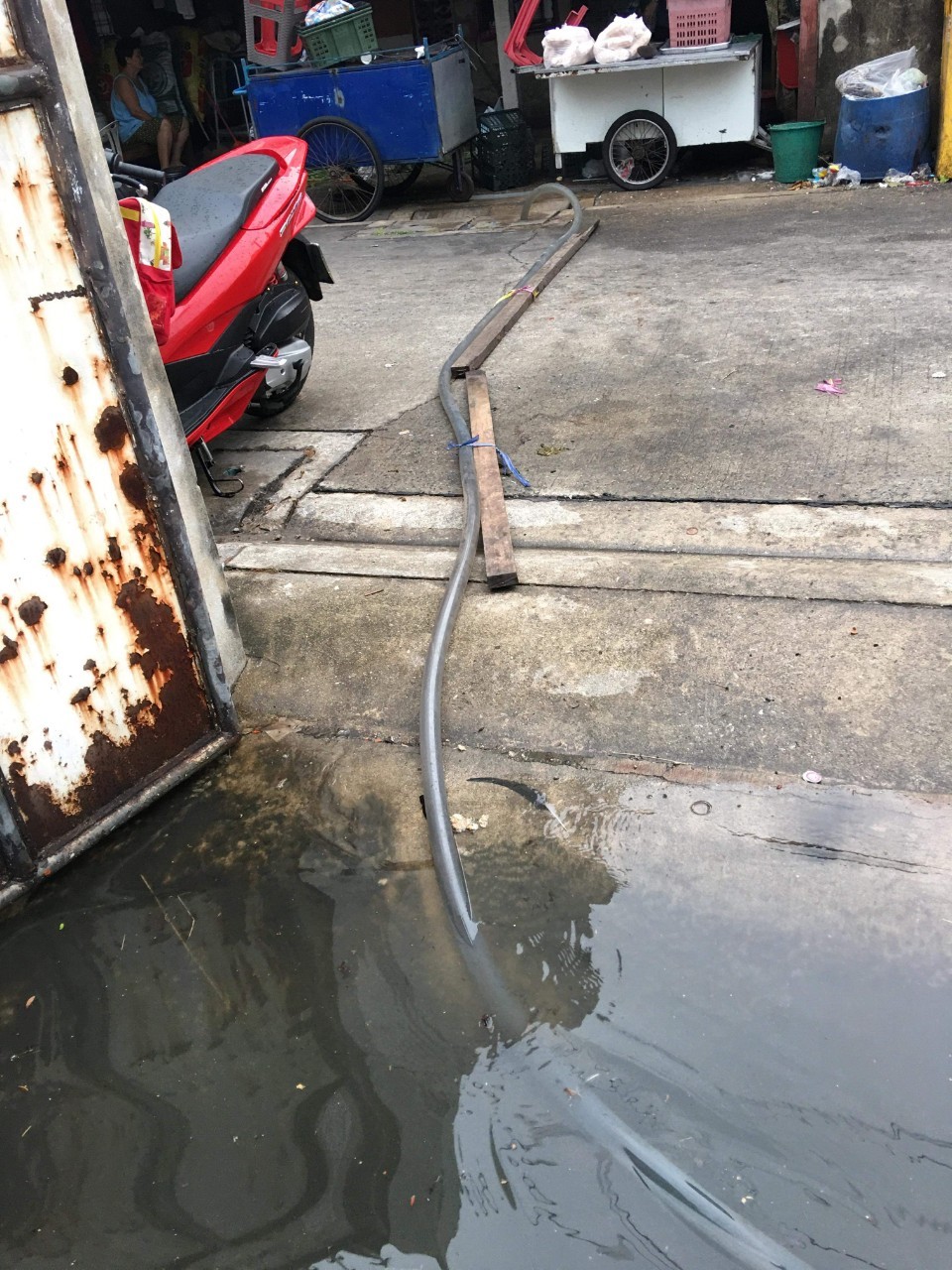 อันนี้พ่อผมลงทุนซื้อเครื่องที่สูบน้ำมาระบาย ก็เหมือนจะไม่ค่อยได้ผลเท่าไหร่