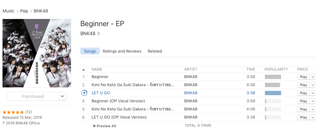 เช้าวันนี้สิ่งที่เปลี่ยนแปลงใน (Apple Music) iTunes คือ ชื่อเพลงจาก Let You go ได้เปลี่ยนเป็น LET U GO ตามรูปที่เราได้เห็นในไลฟ์ตู้ปลาแล้วนะครับ