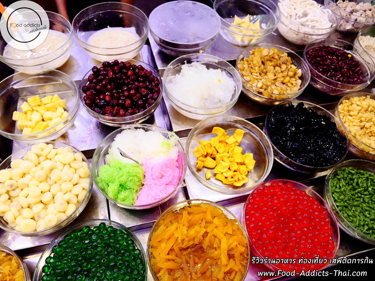 ส่วนเมนูที่นี่ก็สั่งไม่ยากครับ อยากทานเมนูไหนก็สั่งได้จากป้ายเมนูที่ติดเอาไว้ใหญ่โตข้างฝาผนัง ราคาเริ่มต้นที่ 30 - 100 บาท และสามารถเลือกเปลี่ยนท๊อปปิ้งต่างๆได้ตามใจ หรือจะ Create ใหม่ขึ้นมาเอง ก็สามารถทำได้ เช่นเลือกเมนูตั้งต้นมา 1 อย่าง แต่เปลี่ยนเครื่องในชาม น้ำราด (น้ำเชื่อม-น้ำลำไย-น้ำแดง-กะทิสด-กะทิเคี่ยว-น้ำตาลทรายแดง) ตามใจตัวเอง ก็จ่ายราคา 30 บาท เท่าเดิมครับ แต่สำหรับผมแล้วทานได้ทุกอย่างเลย สั่งเป็น "เช็งซิมอี๊" ออริจินอลมา 1 ชาม ส่วนแฟนผมสั่งแบบตามใจฉันมาอีกถ้วยครับ