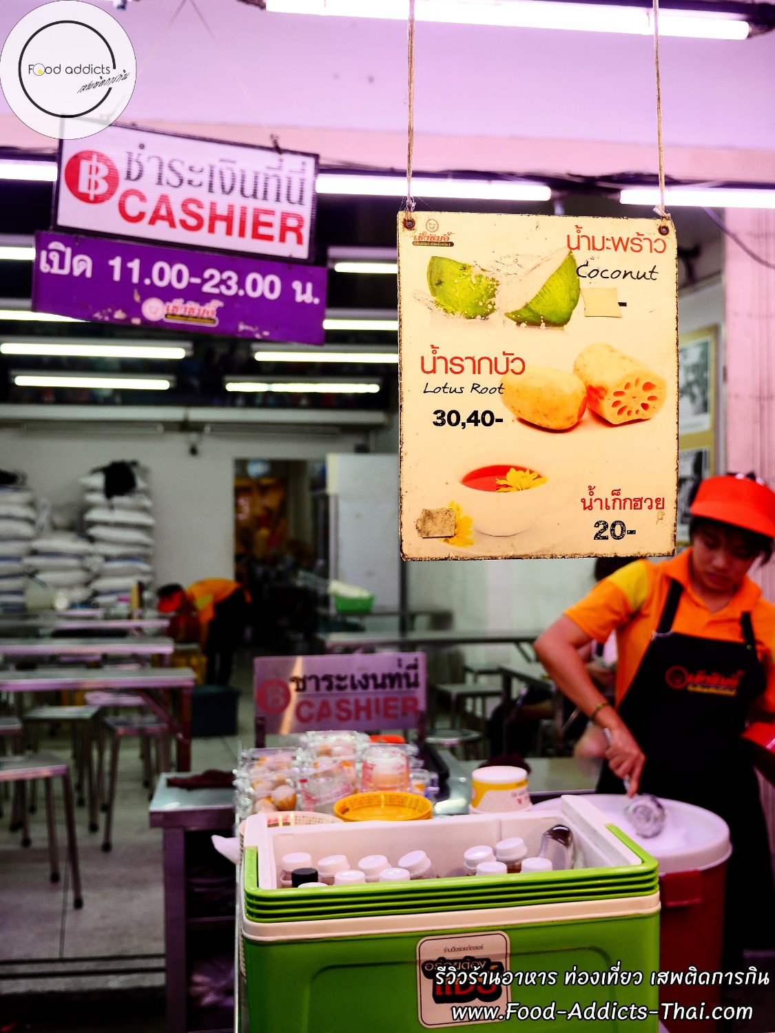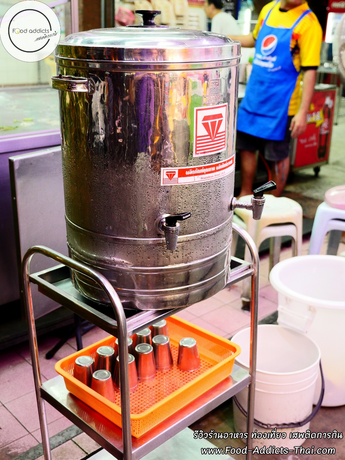 ส่วนเครื่องดื่มที่ร้านก็มีให้เลือก 4 อย่างครับ น้ำมะพร้าว - น้ำรากบัว - น้ำเก็กฮวย แต่ถ้ารู้สึกว่าชีวิตหวานเกินไปแล้ว น้ำเปล่ากดเองฟรีถังโตเลยครับ ส่วนตัวชอบแบบนี้มากกว่า บางร้านให้แก้วเดียวจบยังไม่ทันหายหิวน้ำเลย