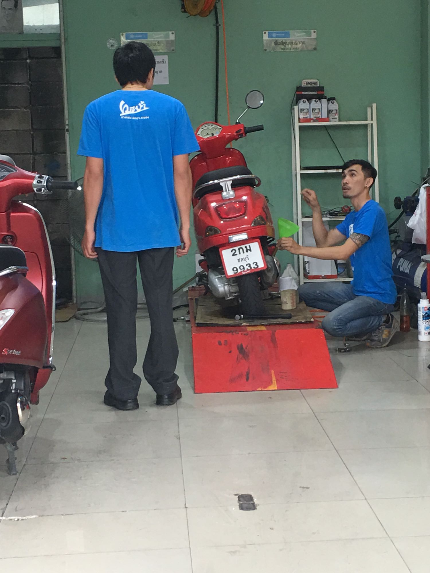 และแล้วก็มาถึงบางแสน จัดการแจ้งช่าง ช่วยเช็คไอ้หมูแดงหน่อยว่าเป็นไงบ้าง สรุปตรวจออกมา ถ่ายน้ำมันเครื่องใส้กรองพอ 555 โดนไม่แพง 6ร้อยกว่าบาท (ขอเมียมา900) พอเหลือ นิดหน่อย