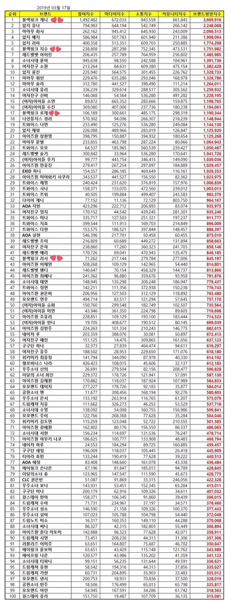 - ผลการจัดอันดับชื่อเสียงเกิร์ลกรุ๊ปรายบุคคลประจำเดือนมีนาคม 2562 👏🎊