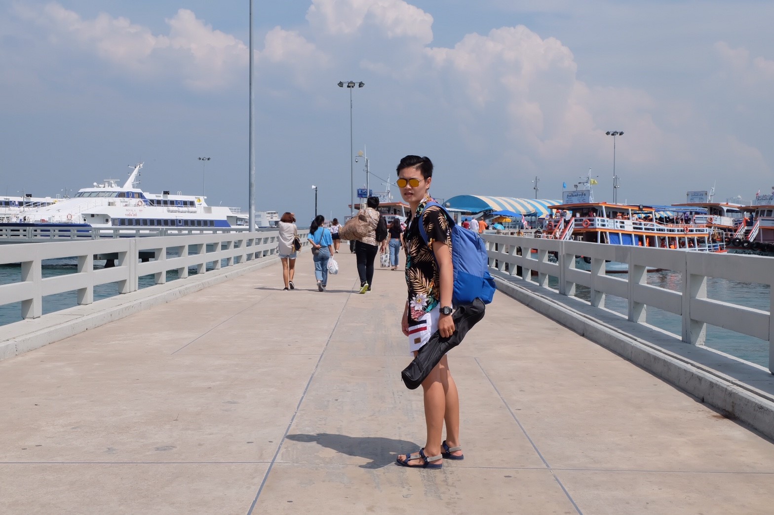 การเดินทางวันแรก เราพักอยู่แถวพระราม 2 นั่งรถไฟ มหาชัย - วงเวียนใหญ่ ไปลงบางบอน และต่อรถกระป๋องไปลงที่เซ้นทรัลพระราม 2 ขึ้นรถตู้ พัทยา - แหลมบาลีฮาย นั่งรถตู้ประมาณ 2 ชั่วโมงกว่า ๆ รถตู้ส่งคนตลอดทางก็ช้าหน่อยนะ แต่เราลงป้ายสุดท้ายเลย แหลมบาลีฮาย รถตู้จะส่งเราแค่ตรงทางเดินเท้าด้านบนของแหลมบาลีฮาย และเดินเท้าต่อไปไม่ไกลมากนักเพื่อไปซื้อตั๋วนั่งเรือไปที่เกาะล้าน