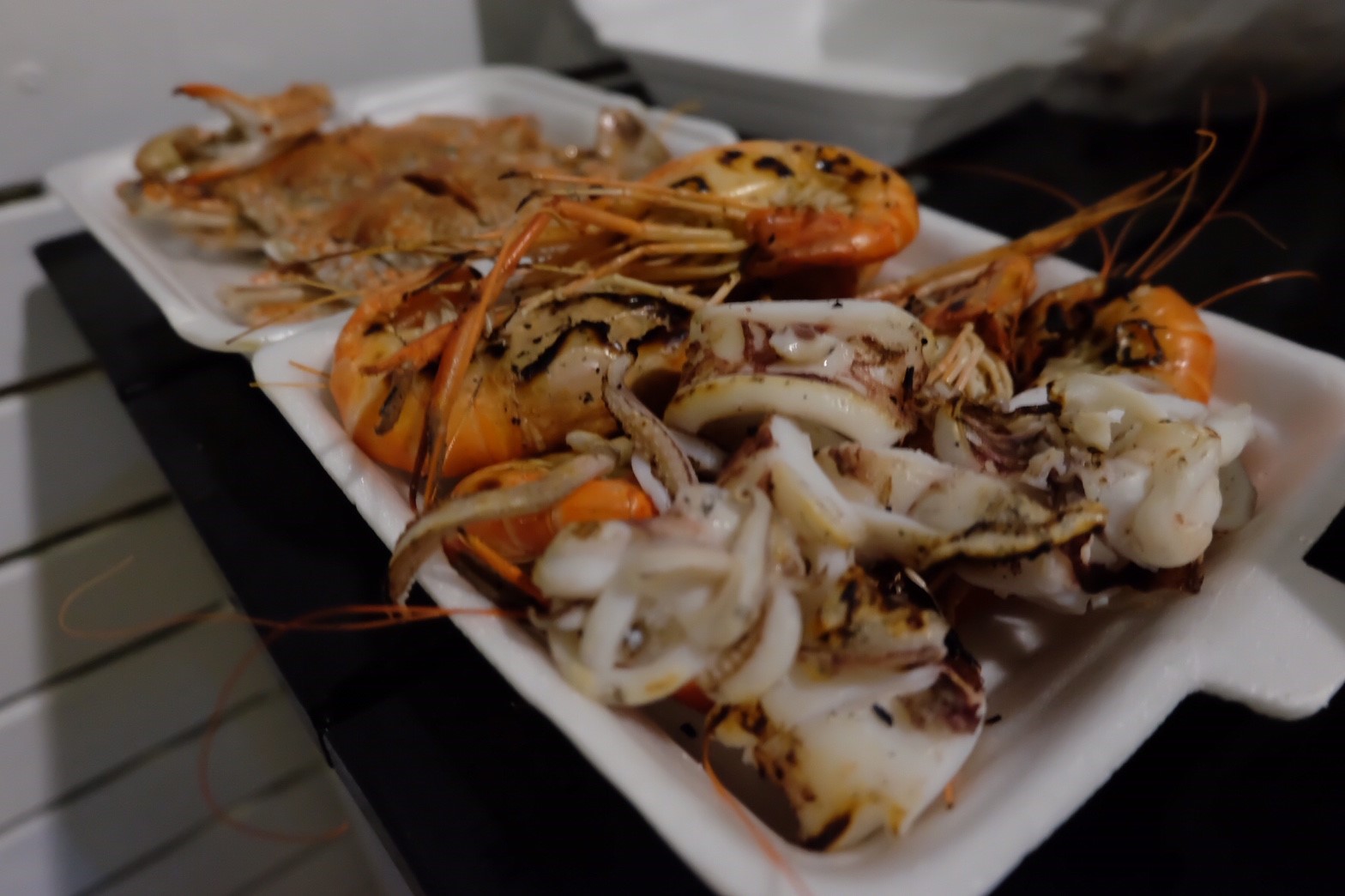 มื้อเยน เอาง่ายๆ เลย ขับไปตลาด จะมีร้านอาหารเยอะมากให้เราเลือกทาน อต่เราเลือกแบบที่เขาเผาให้พร้อมรับประทานกลับมาทานที่พัก