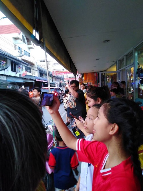 แต่พอมาแล้วว คนมาจากไหนไมรู้เต็มเลยครับ มีสาวๆกรี๊ดดด้วย ผมเลยมอบพวงดาวเรืองให้ 1 อันเลย 55555 เสียดายกล้องผมเบลอๆไปหน่อยครับ
