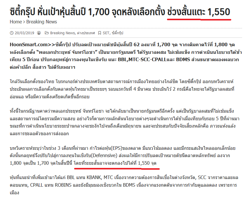 Broker บางเจ้า ให้ target หลังเลือกตั้ง 1550