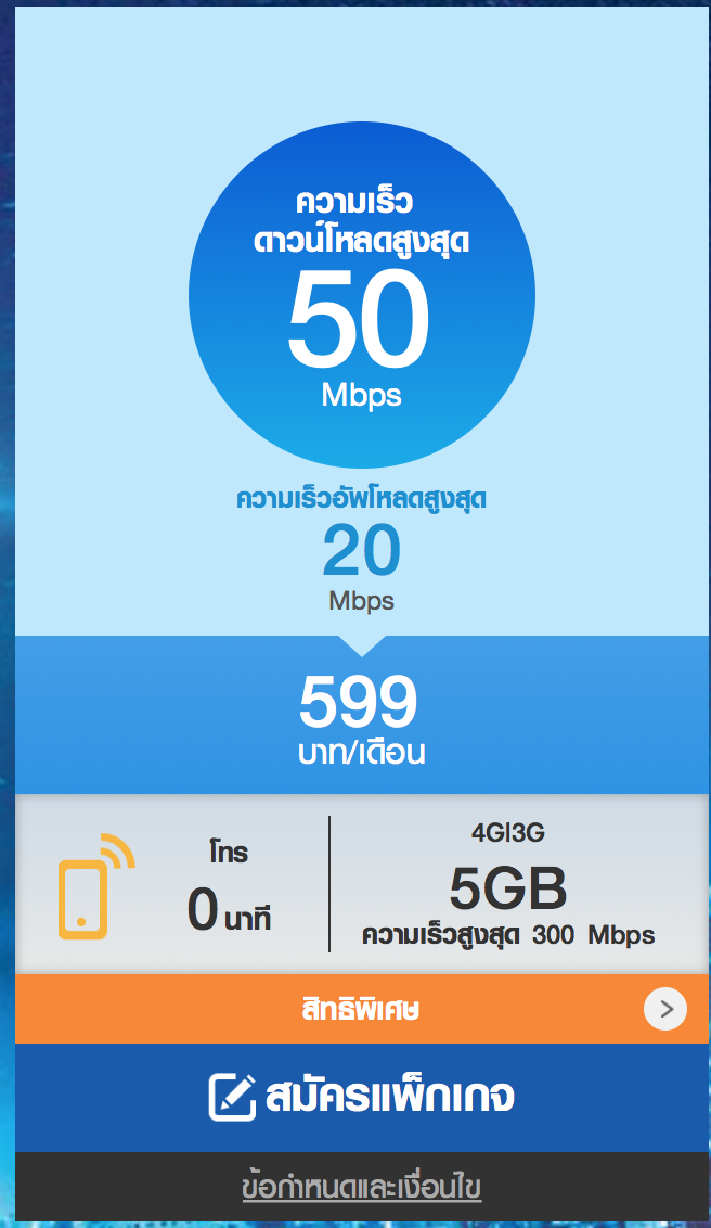 เบื้องต้นได้มีการติดตั้ง internet promotion 599 บาท มีการแถมซิม