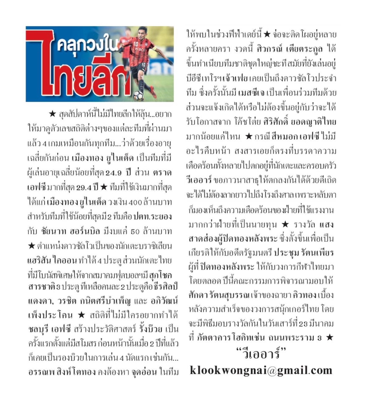 อาจจะเป็นเพราะกระแสจากทีมชาติส่วนหนึ่งด้วย เห็นภาพคนดูในแต่ละสนามนัดแรกแล้วชื่นใจจริง ๆ บางสนามแน่นขนาดต้องเกาะรั้วกันดูทีเดียว ถือว่าบอลลีกเรามีพัฒนาการที่ดีมากจริง ๆ ผมอยากเห็นภาพแบบนี้ไปตลอดพร้อมกั