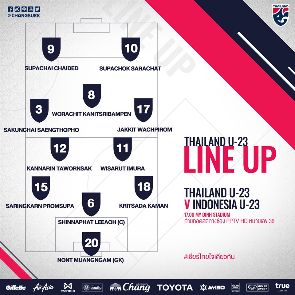 ++ รายชื่อ 11 ตัวจริงของทัพช้างศึก ทีมชาติไทย พบ ทีมชาติอินโดนีเซีย ศึกฟุตบอลชิงแชมป์เอเชีย U23 รอบคัดเลือก ++