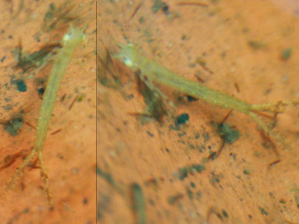 ตัวยาวซัก1เซนครึ่ง น่าจะมีหาง2แฉก หนวด2ข้าง ตาน่าจะสีขาว