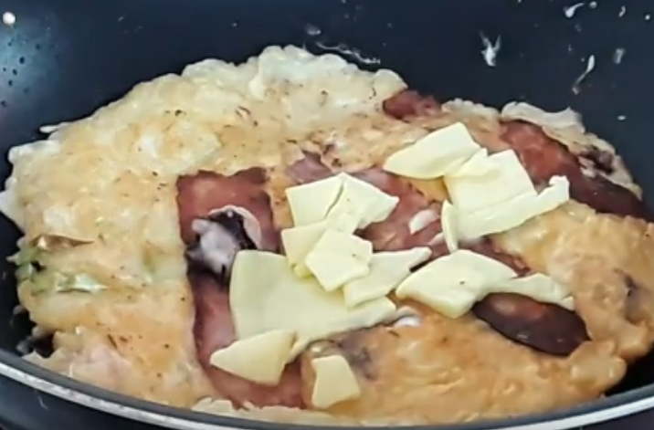 5.นำชีสวางด้านบนรอจนชีสละลาย แล้วตักขึ้นใส่าน