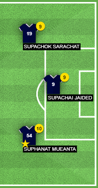 ศุภณัฐ เหมือนตา เด่นการจบสกอร์ที่คมกริบ ครบเครื่องในการทำประตู ยิงได้ทุกรูปแบบ ฟรีคิก ลูกกลางอากาศ ยิงไกล มีทักษะที่ยอดเยี่ยม