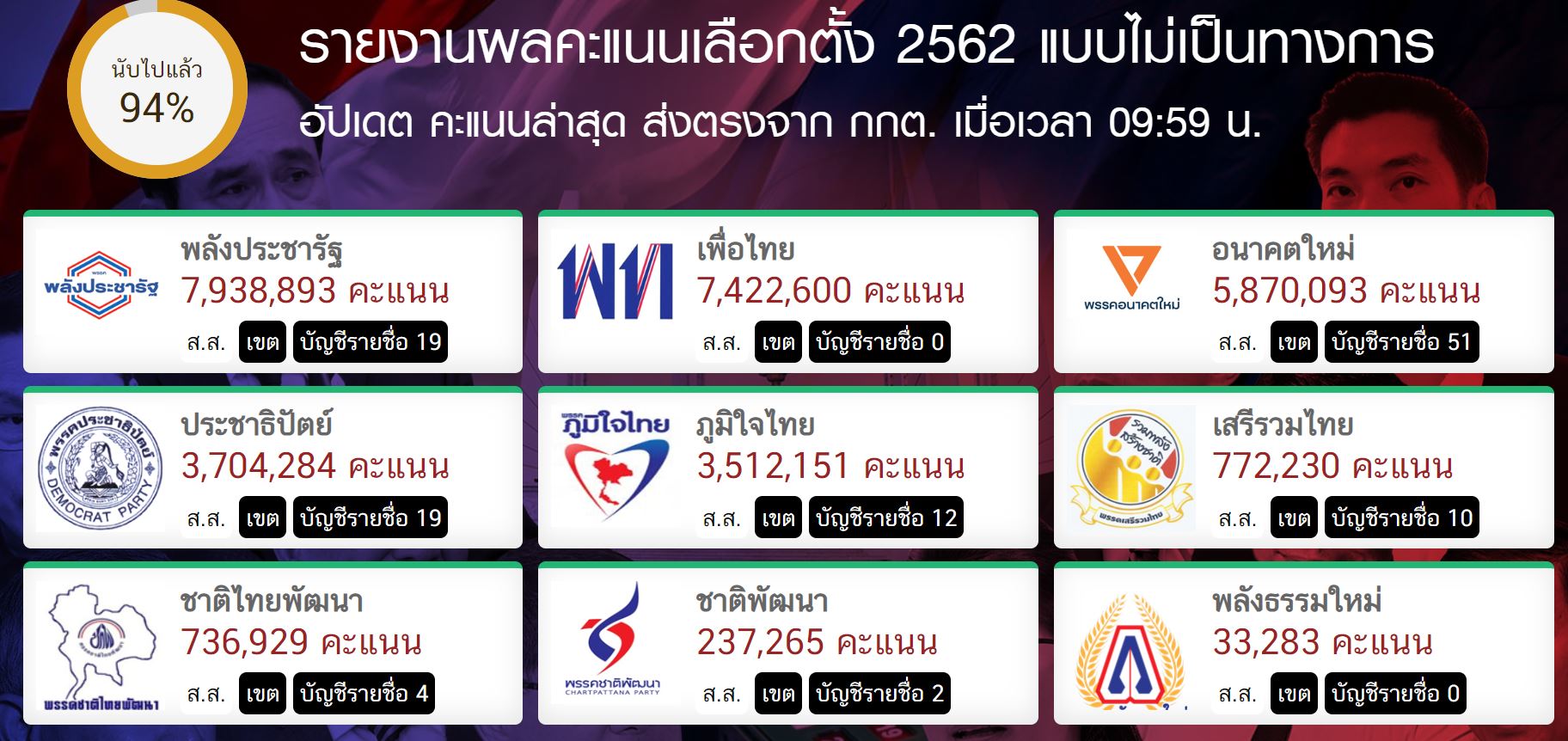 ผลต่างคะแนนดิบ ประมาณ 500,000 ลุ้นบัญชีรายชื่อ 19 ชื่อ มาดามเดียร์