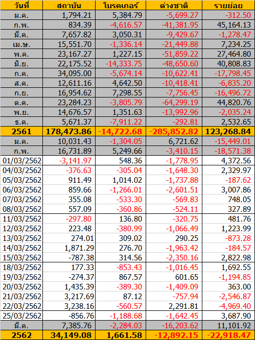 Sinthorn Summary 25/3/2562 : ต่างชาติขายสุทธิ -1,642.45 ลบ.
