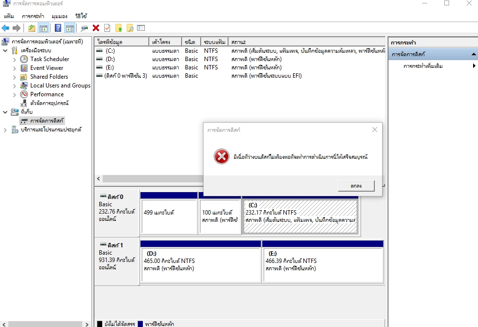 แบ่งพาติชั่น ไม่ได้ มันเนื้อที่ว่างดิส ไม่พอ
