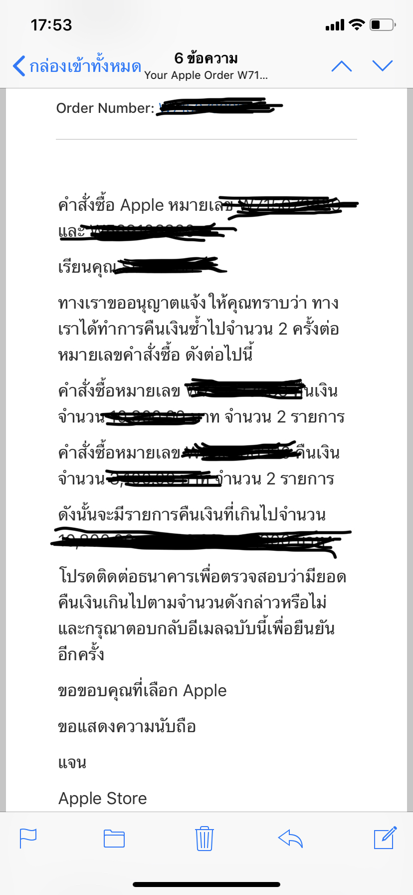 สรุปตอนนี้รอทาง Apple อยู่ครับ ว่าเขาจะให้ผมคืนเงินยังไง กำลังรอ พนง.ให้คำตอบผ่านอีเมลล์