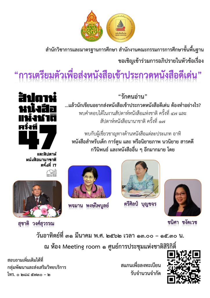 ขอเชิญร่วมฟังการอภิปราย "การเตรียมตัวเพื่อส่งหนังสือเข้าประกวดหนังสือดีเด่น ของ สพฐ."