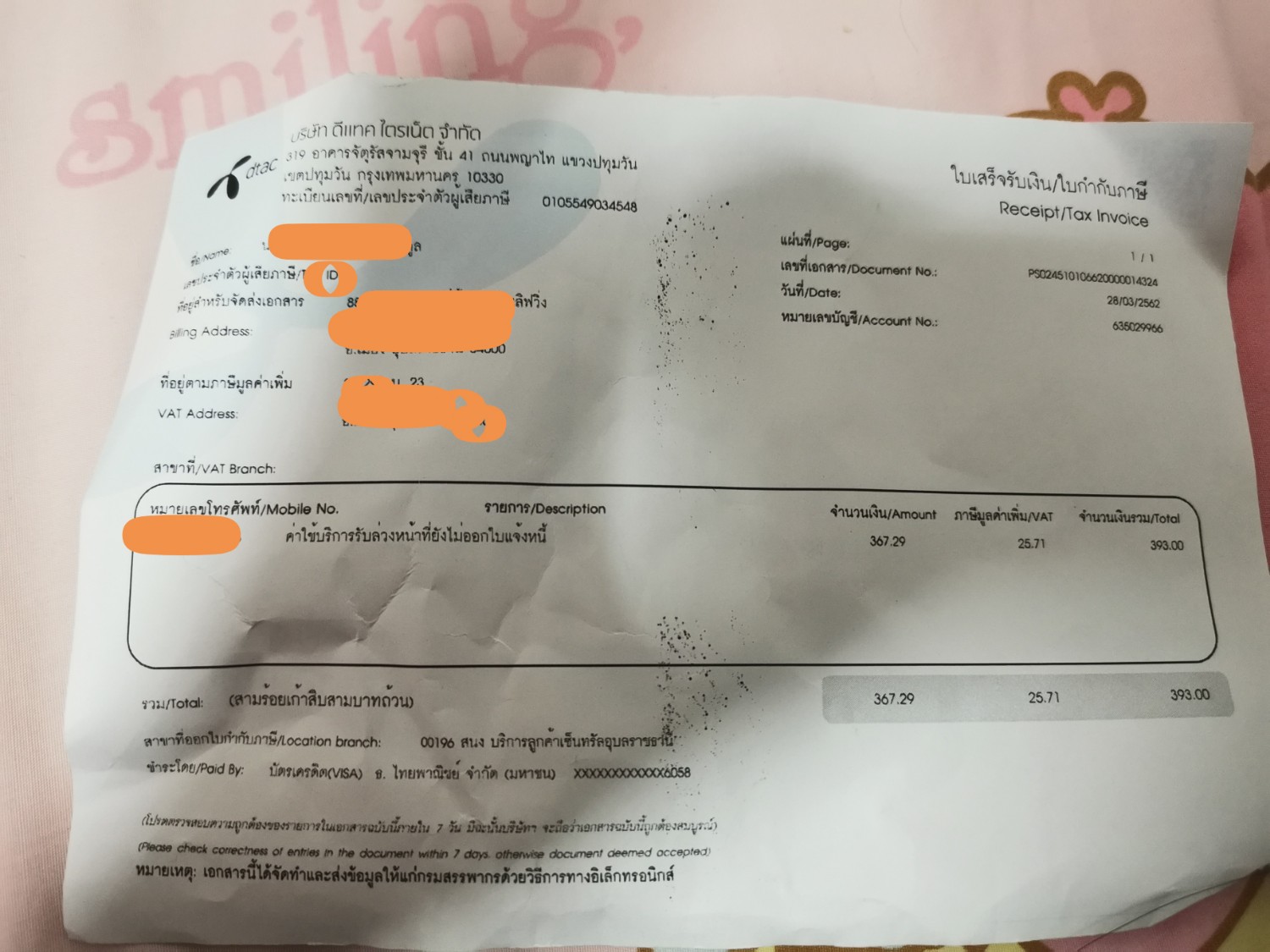 เนื่องด้วยพึ่งเปลี่ยนเบอร์ค่ะ ร้านแจ้งไว้ว่าไม่มีติดอะไรแล้วก็เป็นซิม dtac(เติมเงิน) แบบเปิดใช้งานใหม่ด้วย ตัวเราเองก็ลงทะเบียนถูกต้องทุกอย่าง เช็คด้วยว่าเบอร์กับเลขบัตรประชาชนที่ลงทะเบียนตรงกัน แต่พอ