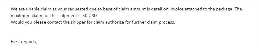 ทาง FedEx ยืนยันจะชดใช้ค่าสร้อยที่หักให้ 50 USD เพราะ พัสดุ declare มา 50 USD ดิฉันเลยถามกลับไปว่า ถ้า declare มา 3000 USD ก็จะชดใช้ 3000 USD หรอ??? จนท. FedEx ก็เงียบไป