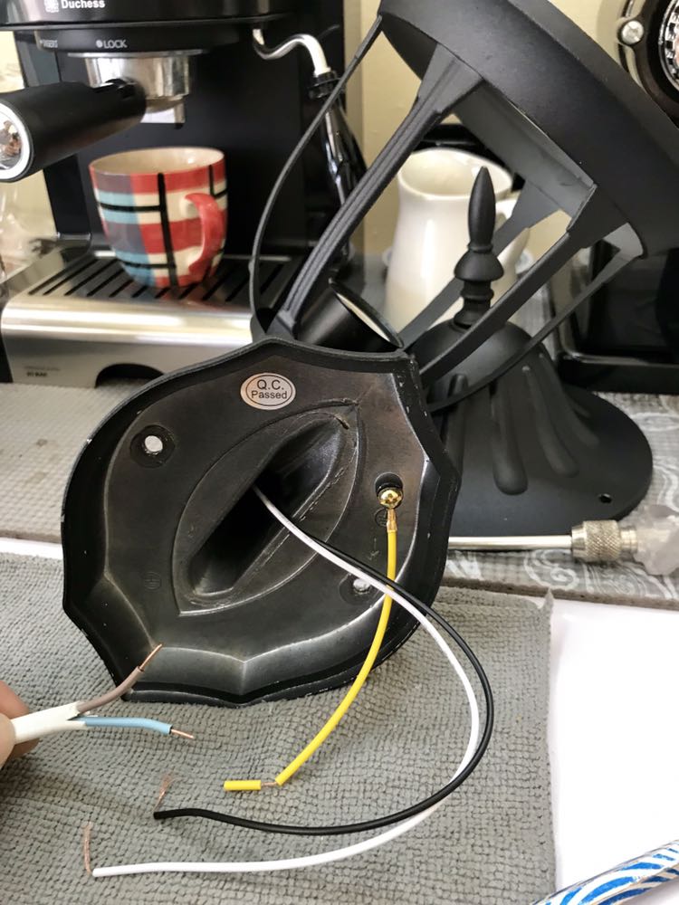 ตามภาพเลยครับ ซื้อโคมไฟติดเสาหน้าบ้าน มีสายดินมาด้วย ต่อกับสายไฟธรรมดายังไงครับ