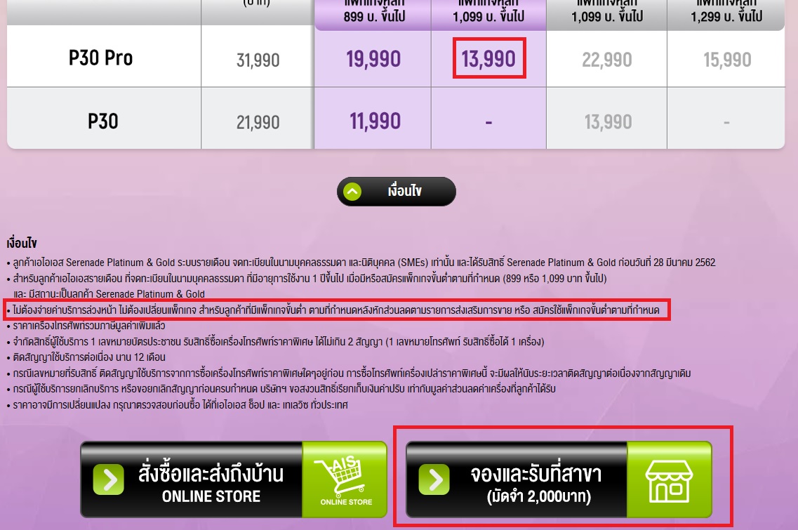 ผมเข้าไปที่นี่ http://www.ais.co.th/HuaweiP30Series/