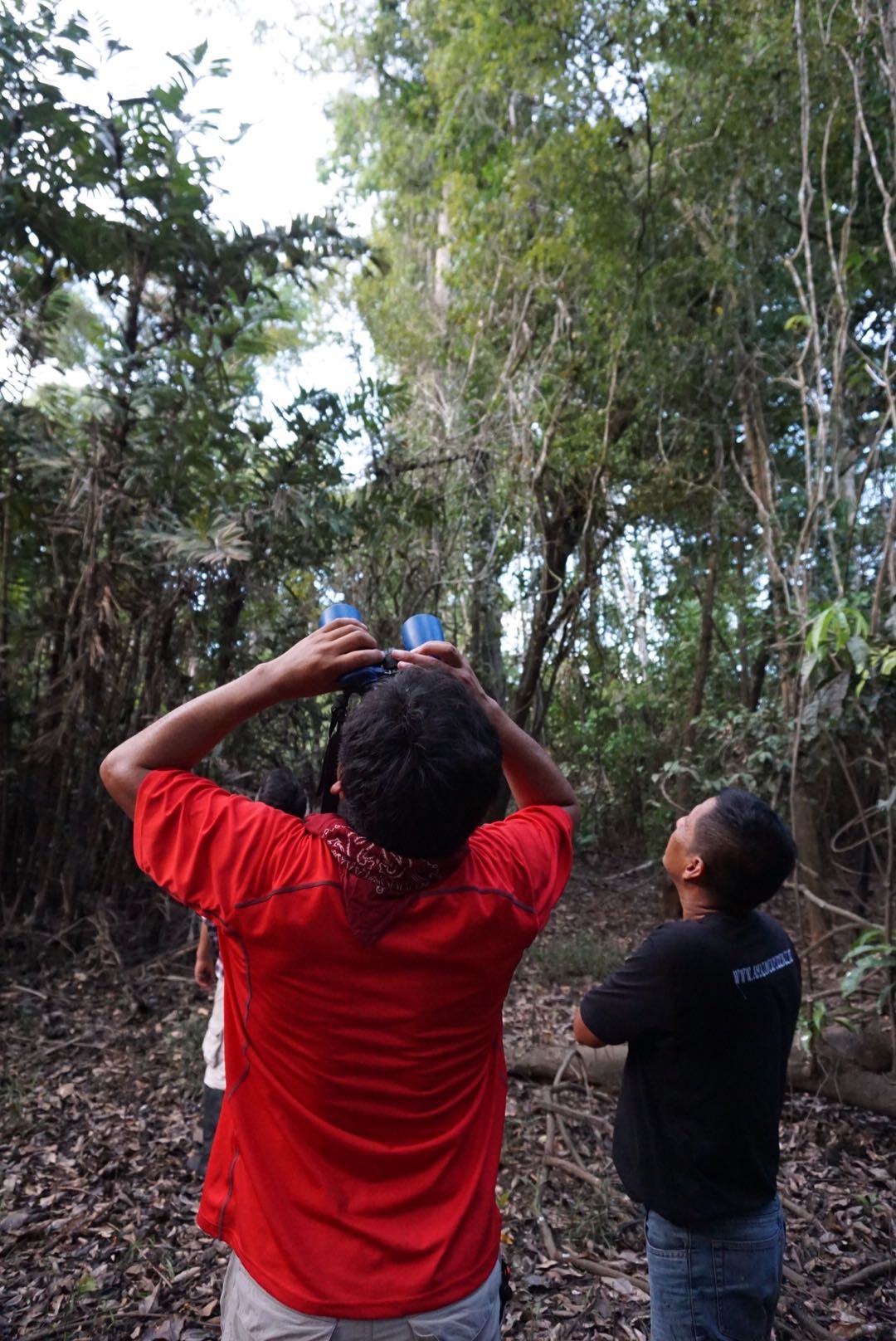 เราพายเรือกลับที่พัก หุงหาอาหารเช้าเสร็จแล้วก็เก็บของนั่งเรือหางยาวเข้าไปในป่าลึกขึ้น ตอนนี้มีสมาชิกเพิ่มอีก 1 คนคือป้า จะไปช่วยหุงข้าวทำกับข้าวและป้าก็ได้กลายมาเป็น เพื่อนร่วมเต้นท์ของซินญอริต้า 1คืน นั่งเรือไป 3 ชม.ซินญอริต้านั่งห้อยขาตรงหัวเรือ แล้วมีตัวอะไรก็ไม่รู้กะโดดมาชนขา โอ้ยยยยย ขยาดไปเลย ตกใจสุดๆ มันคงคิดว่าเป็นเหยื่อจะมากินเท้า ทุกคนเลยแซวว่าปลาแถวนี้คงชอบ Thai Food ระหว่างทางเราก็เพลิดเพลินไปกับบรรยากาศ เห็นเต่าขึ้นมานอนผึ่งแดดตรงกิ่งไม้ที่โผล่มาเหนือน้ำ ผีเสื้อก็บินวนรอบเต่า แต่เราถ่ายรูปไว้ไม่ทันเพราะว่าพอเรือมาใกล้ เจ้าเต่าก็พากันหลบลงน้ำ แต่ภาพความทรงจำมันติดตายิ่งกว่ารูปถ่าย มีเจ้านก Kingfisher โฉบไปมาหาปลาตัวเล็กในน้ำ แถมยังเจอนกแก้วมาคอร์ฝูงใหญ่มากกกกกกกก เสียงดังสุดๆ น่าจะมีไม่ต่ำกว่า 50 ตัว เกาะอยู่บนต้นไม้สูงลิบ สีสวยมากกกกก เราต้องใช้กล้องส่องทางไกลส่องดู มีอยู่1 อันก็แบ่งกันส่องไป เจอเจ้าลิงกระโดดเกี่ยวไปมาบนต้นไม้ คาลอสเก่งมาได้ยินเสียงก็รู้แล้วว่าเป็นตัวอะไร หลังๆเราเริ่มจะฝึกวิชาพอจำเสียงลิงกะนกได้นิดหน่อย ส่วนโลมาคือขาประจำ วนเวียนมาพ่นน้ำตลอดทาง ช่วงปลายๆน้ำเราจะเจอโลมาสีชมพูเยอะ โลมาสีชมพูจะขี้อายไม่ค่อยกระโดดสูง แต่พอลึกๆเข้าไปจะเจอโลมาสีเทา เจ้าพวกนี้จะขี้เล่นชอบกระโดดโชว์ตัว แต่ก็ถ่ายไม่ทันอยู่ดี ฮี่ๆๆๆๆ