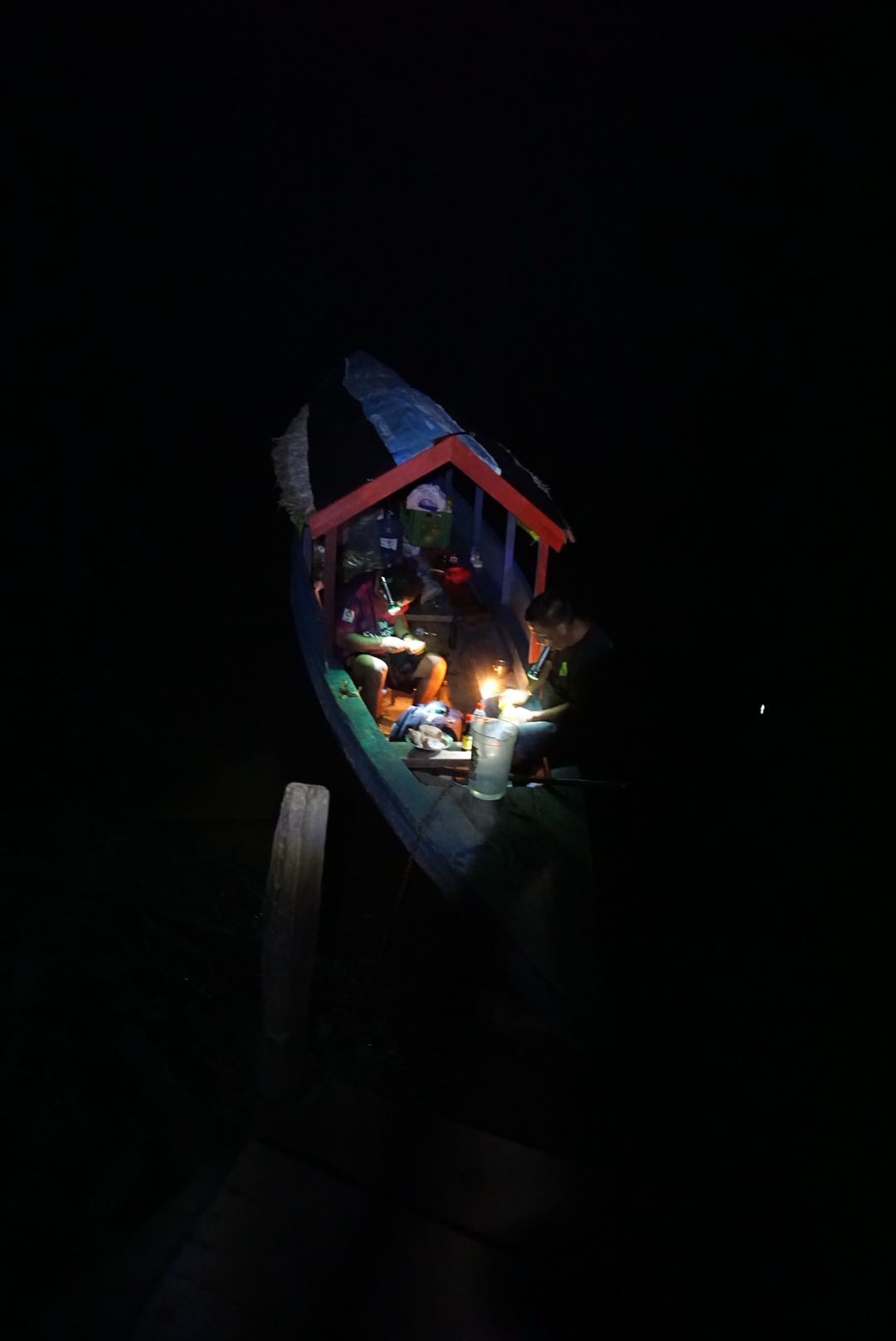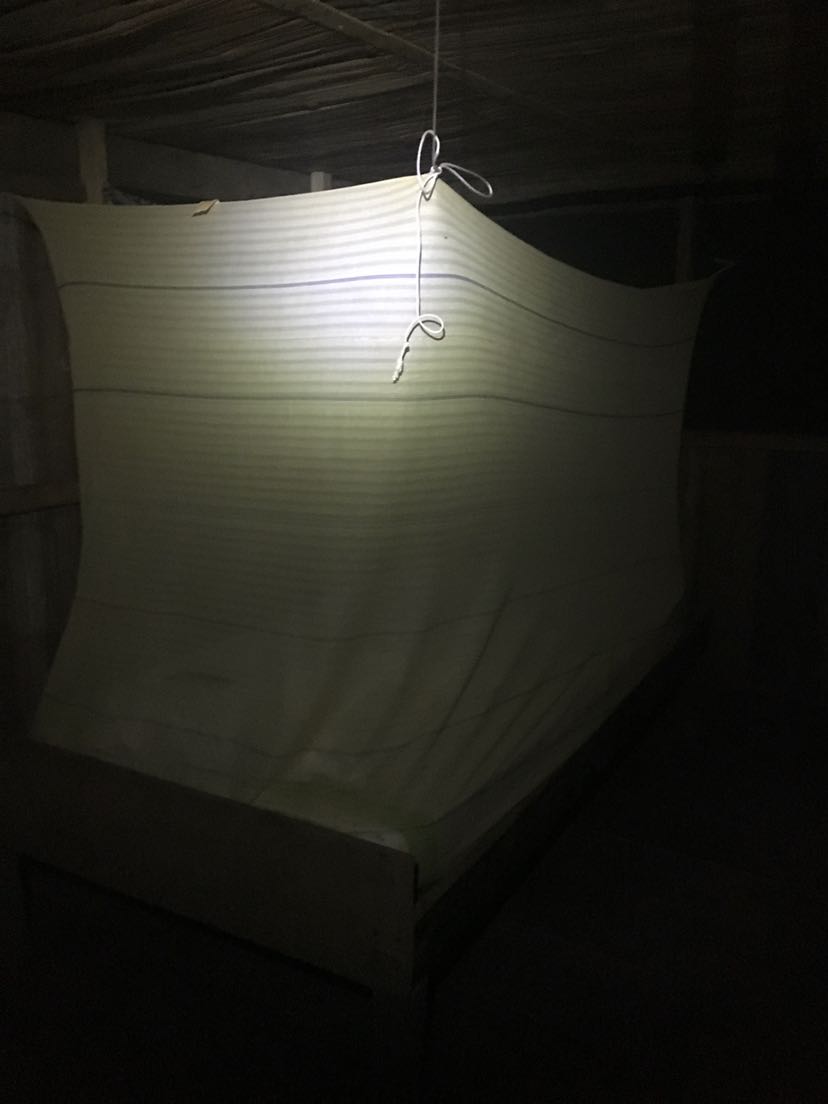 กินข้าวเสร็จก็เข้านอน พอเข้ามุ้งปั๊ปไฟดับพอดี บ้านแถวนี้จะมีเครื่องปั่นไฟ เสียงดังกระหึ่มแข่งกับเสียงพ่นน้ำของปลาโลมาในแม่น้ำ ปั่นไฟใช้แค่เวลา 1800-2100 เท่านั้น เราต้องรีชาจ์แบตเตรียมไว้ แล้วรีบนอน ป้าๆลุงๆก็เปิดเพลงเสียงดัง นั่งล้อมวงกินเหล้าหมักจากหัวอะไรสักอย่าง คล้ายๆมันหวาน หมักไว้ในถังพลาสติกปิดฝา พอจะกินก็เปิดมาเอาแก้วจ้วงจากถังมาแบ่งกันกิน กลิ่นแรงมากกกกกกกกกก น่าจะไม่ต่ำกว่า 30 ดีกรี