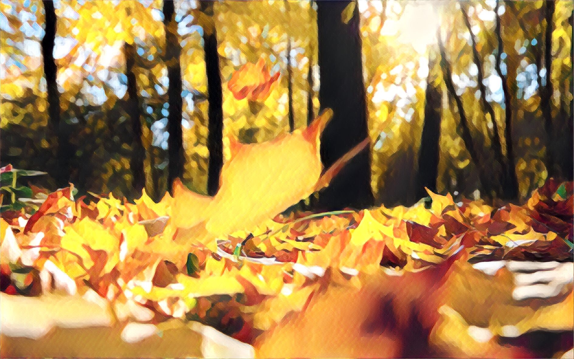 ใบไม้หลากสีลอยไปมาในอากาศ