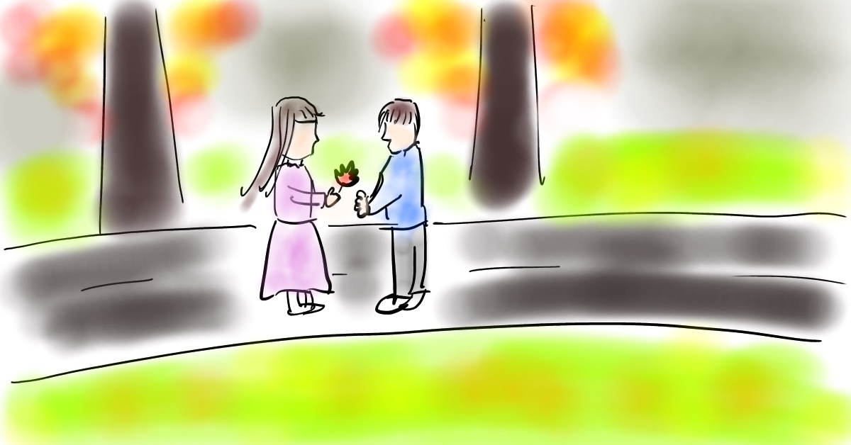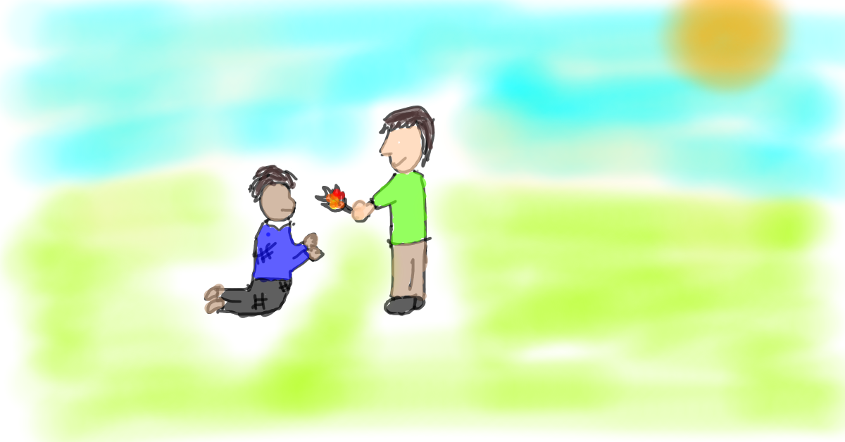 "พี่ครับ ผมให้พี่" เด็กคนนั้นยิ้ม และยื่นสร้อยที่ทำเล่นจากใบไม้และกิ่งไม้เล็กๆ จากคอให้กับเคน