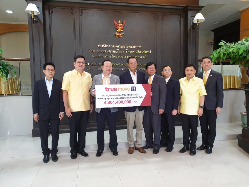 นายฐากร ตัณฑสิทธิ์ เลขาธิการคณะกรรมการกิจการกระจายเสียง กิจการโทรทัศน์ และกิจการโทรคมนาคมแห่งชาติ (เลขาธิการ กสทช.) กล่าวว่า บริษัท ทรู มูฟ เอช ยูนิเวอร์แซล คอมมิวนิเคชั่น จำกัด (บริษัทฯ) ผู้ชนะการประมูลคลื่นความถี่สำหรับกิจการโทรคมนาคมย่าน 900 เมกกะเฮิรตซ์ คลื่นความถี่ 905 – 915 เมกกะเฮิรตซ์ คู่กับ 950 – 960 เมกกะเฮิรตซ์ ได้นำเงินค่าประมูลงวดที่ 3 จำนวน 4,301.40 ล้านบาท (รวมภาษีมูลค่าเพิ่มแล้ว) พร้อมกับหนังสือค้ำประกันจากสถาบันการเงินเพื่อค้ำประกันการชำระเงินประมูลคลื่นความถี่ในส่วนที่เหลือวงเงิน 64,433.26 ล้านบาท (รวมภาษีมูลค่าเพิ่มแล้ว) มามอบให้แก่สำนักงาน กสทช. ตามเงื่อนไขของการชำระเงินประมูล โดยเงินค่าประมูลดังกล่าว สำนักงาน กสทช. จะรีบนำส่งกระทรวงการคลังเพื่อเป็นรายได้ของแผ่นดินต่อไป