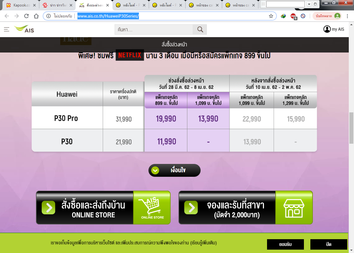 หมายเลขโทรศัพท์ของผม สามารถซื้อโทรศัพท์ HuaweiP30Pro