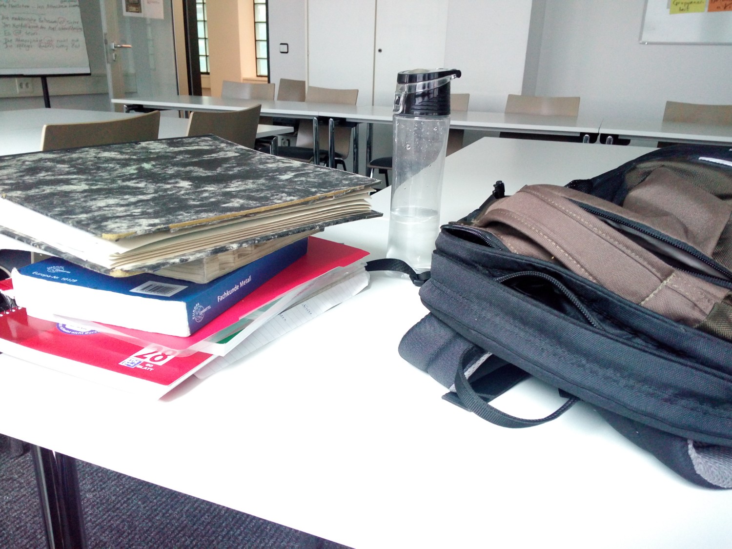 เด็กช่างที่นี่แบกกระเป๋าหนักมากค่ะ หนังสือเรียนทุกวิชา เพราะวันนึงเรียนสี่ถึงห้าวิชา สมุดจด กล่องข้าว แถมของเอิงต้องแบกหนังสือเรียนภาษาเยอรมันด้วย