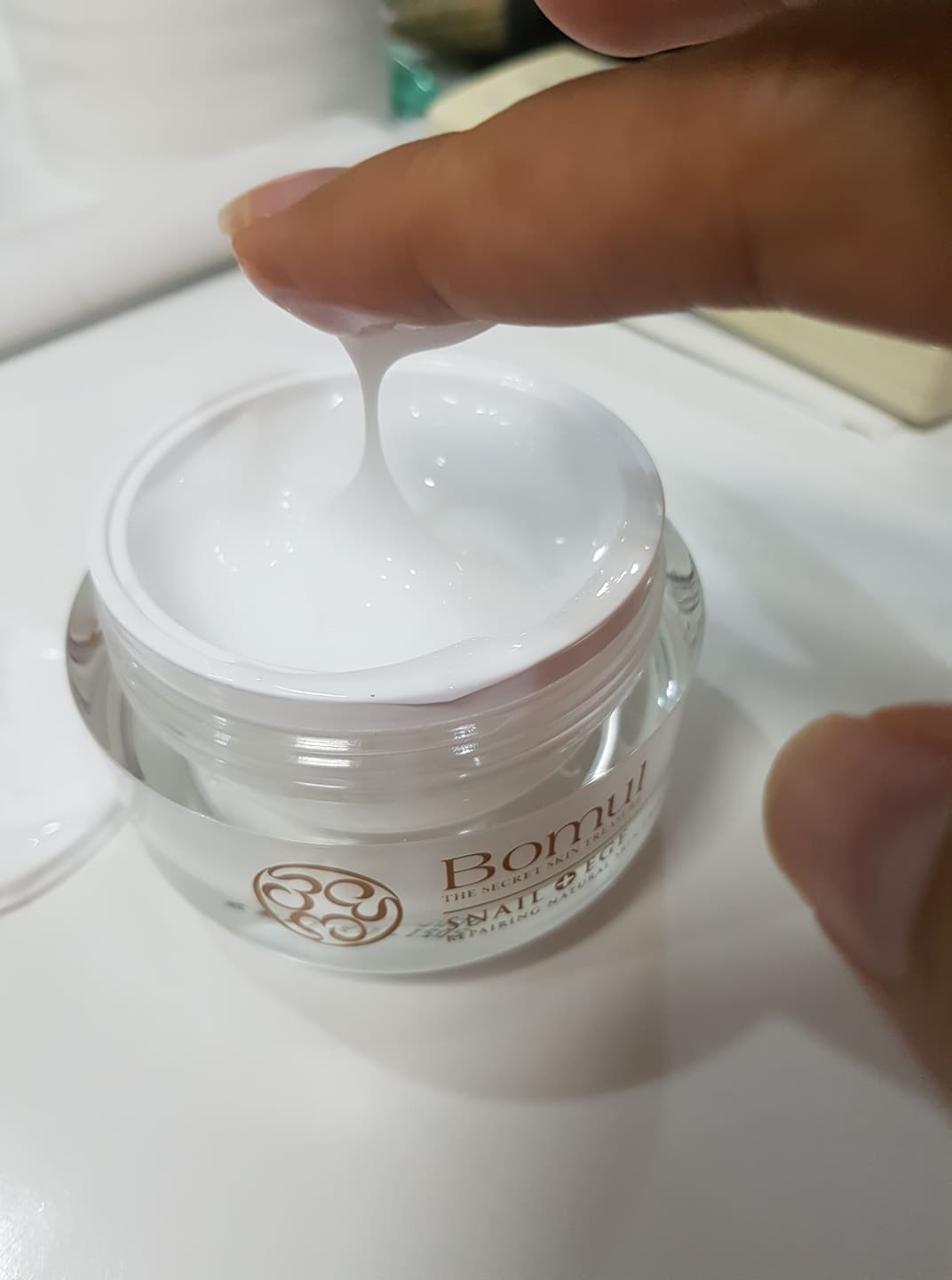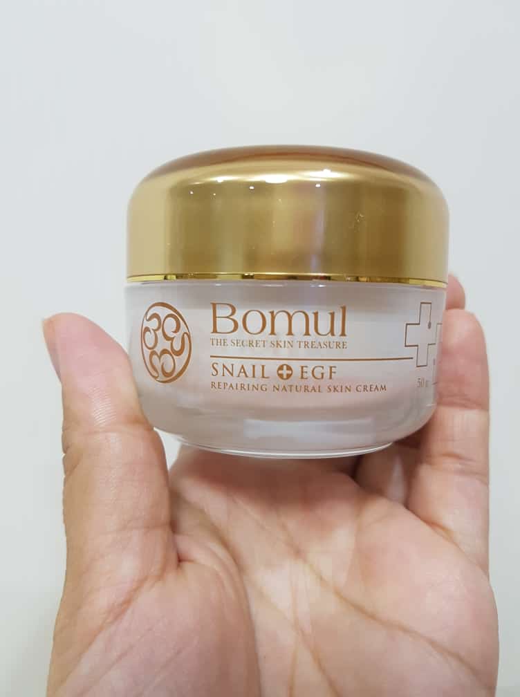 ขึ้นมาทันที เพราะสรรพคุณมากมายของเมือกหอยทาก อย่างว่านะ อายุ30+ แล้วต้องหาอะไรที่คิดว่าดีต่อผิวมาใช้กันแหละ แล้วด้วยที่มีสิวเสี้ยน รอยแดงเยอะ เลยลองใช้ เจ้าครีมตัวนี้ หล่อนมีชื่อว่า "Bomul โบมูล สเนล ครีม (Bomul The Secret Skin Treasure)" เป็นครีมจากฝั่งเกาหลี คิดว่าหลายๆ คนน่าจะเคยเห็นหรือลองใช้กันบ้างแล้ว เพราะเค้ามีขายใน อีฟแอนด์บอย และ ก็มีตามที่เค้าขายออนไลน์ด้วย