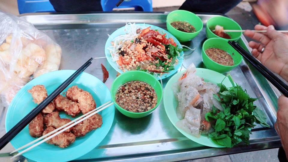 จานแรกก หมูทอด อร่อยดี จานที่2 เป็นเนื้อวัว ราดน้ำอะไรสักอย่าง กินกับมะละกอดิบ จานนี้เป็นเมนูที่ทุกโตะเค้าสั่งกัน มันก็อร่อยจริงๆ สุดท้ายกวยเตี๋ยวห่อกุ้ง เมนูนี้มันแปลกๆ ปะแหล่มๆ อะ จืดดดดดดดดดดดสนิท 55 😆😆 คือเราอาจจะไม่ชอบรสนี้ก้ได้ มันเอือนๆ บอกไม่ถูกเลย มื้อแรกในฮานอย ราคาประมาน 200 บาท