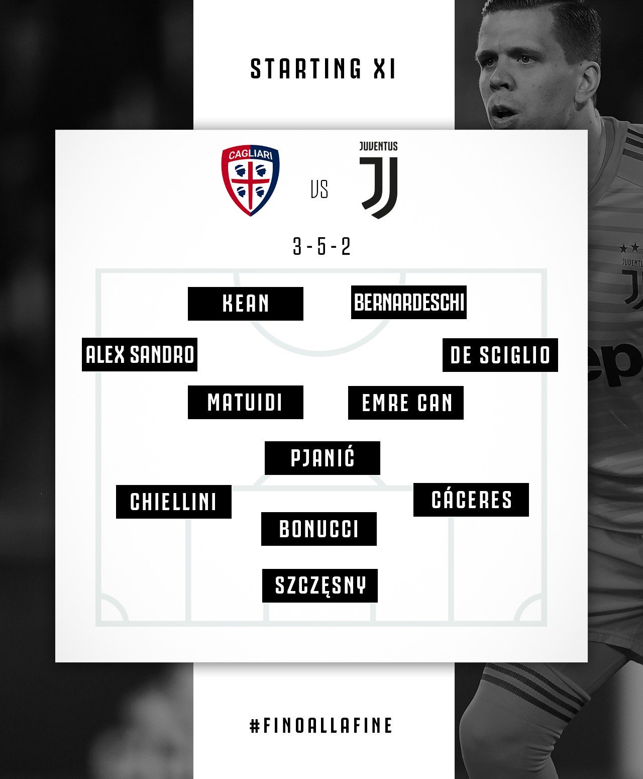 สวัสดีค่ะ สาวกเบียงโคเนรี่ & รอสโซเนรี่ Line-up 11 ผู้เล่นตัวจริงและสำรองของพ่อกรี้ ⚪️⚫️ SUBS: Pinsoglio, Del Favero, Chiellini, Cancelo, Pjanic, Khedira, Matuidi, Nicolussi Caviglia, Kean. L