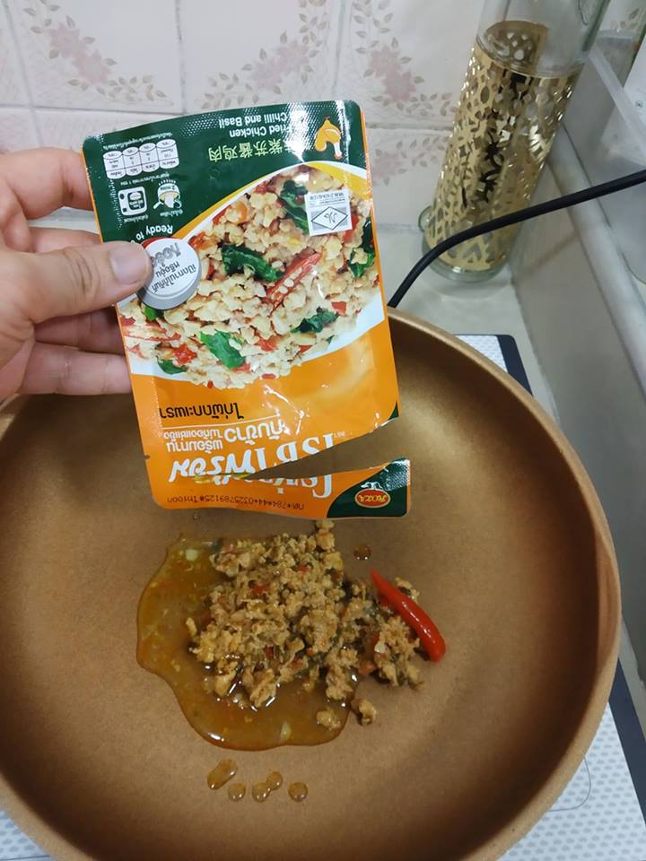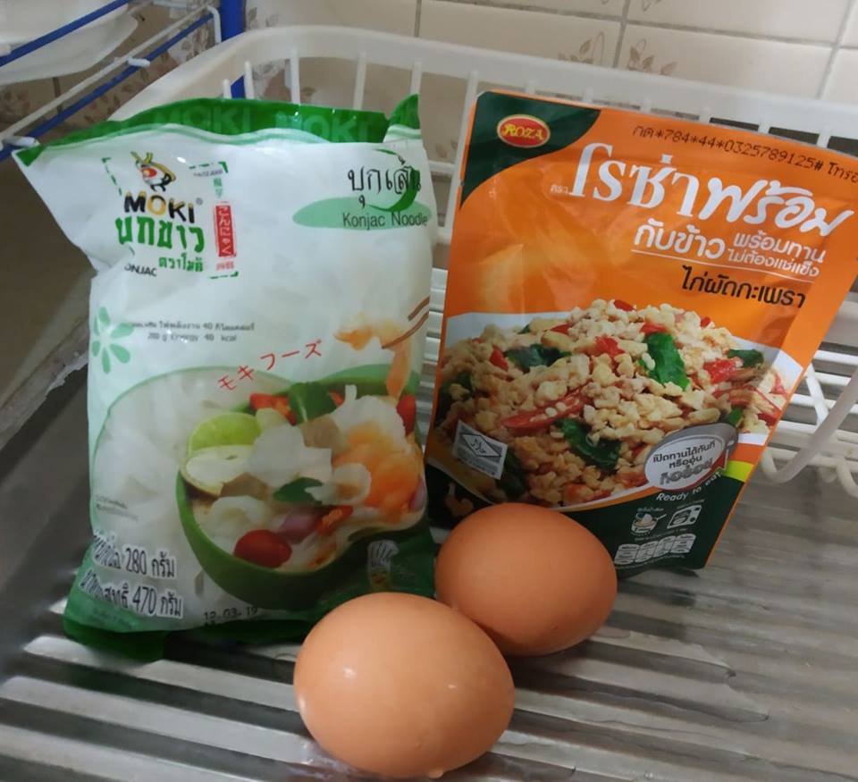 กะเพราะ 40 บาท เส้น 20 บาท (ใช้ครึ่งถุง) ไข่ 10 บาท