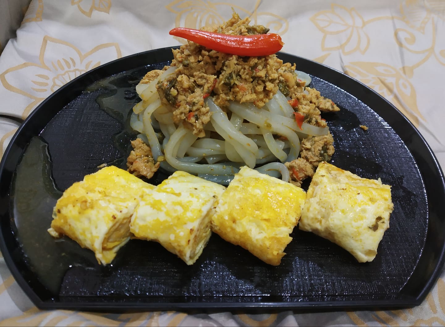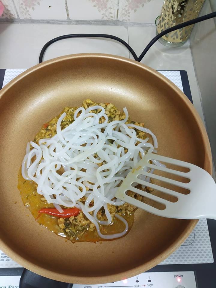 เลยได้เมนูนี้มาครับ "ก๋วยเตี๋ยวกะเพราไก่ เส้นบุก"