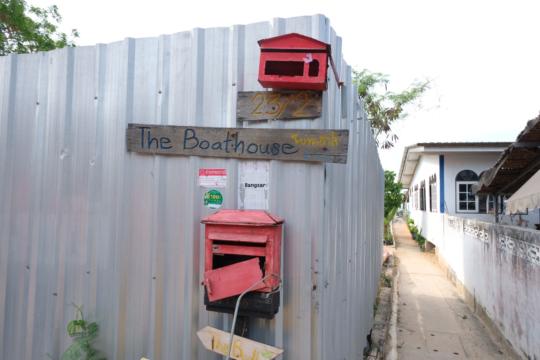 ปากทางมีพี่ ๆ วินคอยให้บริการ บอกพี่วินไป The Boathouse ค่ารถ 20 บาท จอดหน้าทางเข้าที่พักเลย