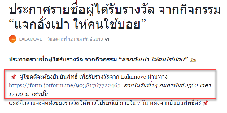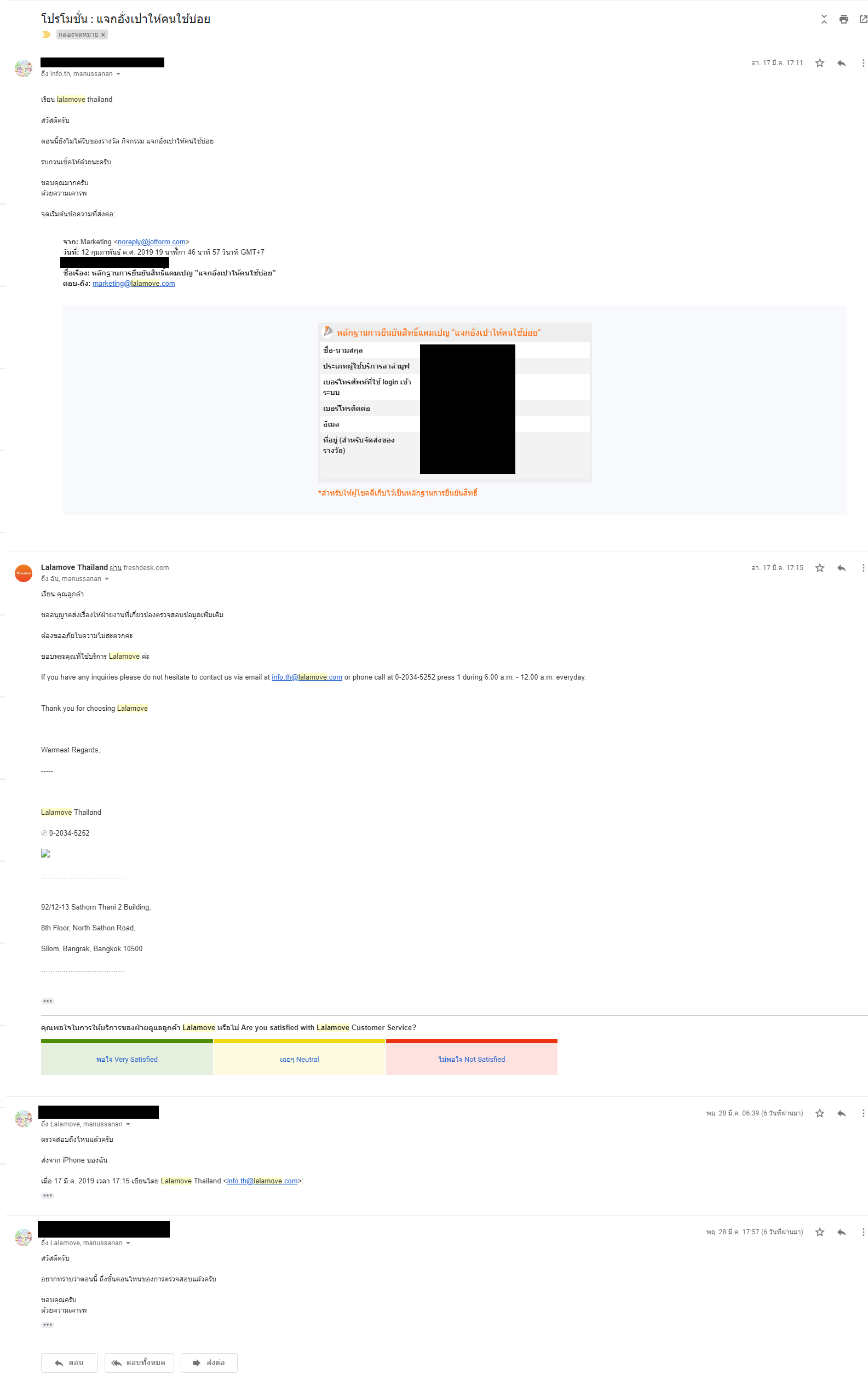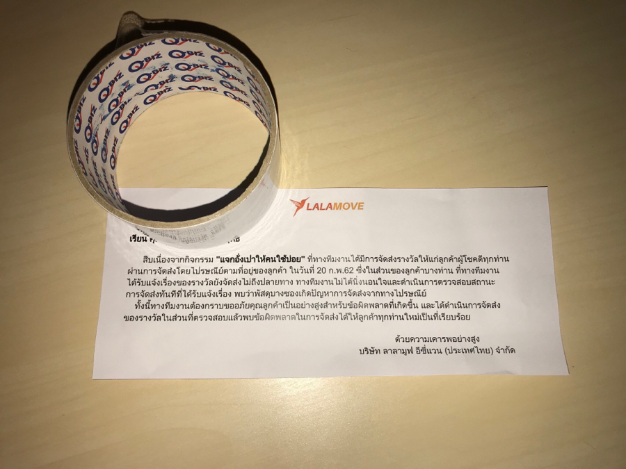 ทวงถามของรางวัล จาก กิจกรรมของ Lalamove