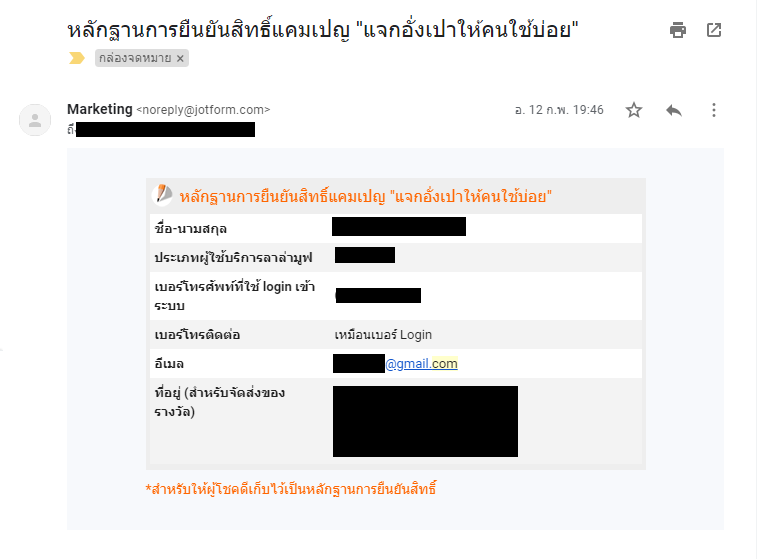 ก็ได้หลักฐานการยืนยันรับสิทธิ์การรับรางวัล