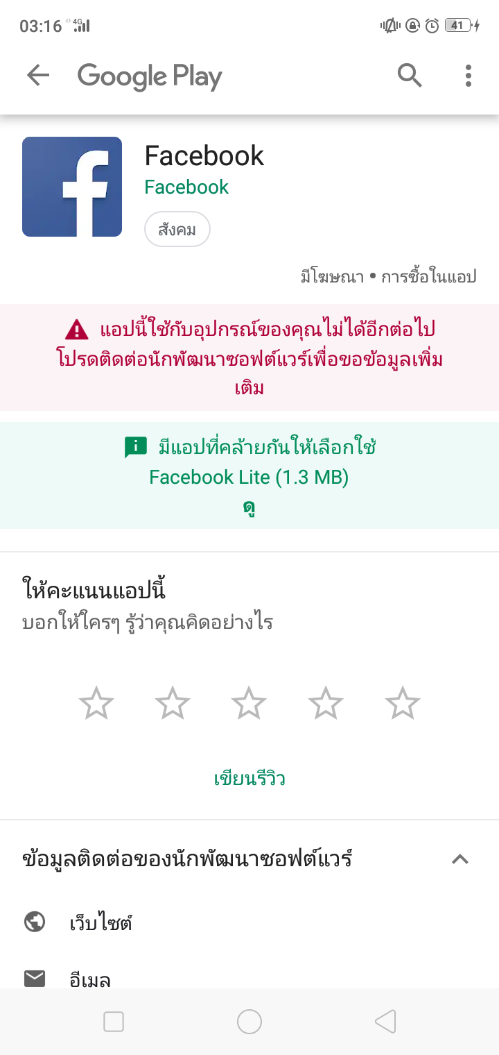 พอดีจะพอดีจะโหลด เฟส จาก play สโต แต่มันขึ้นว่า ไม่รองรับ ตามรุปนี้เลยคะ