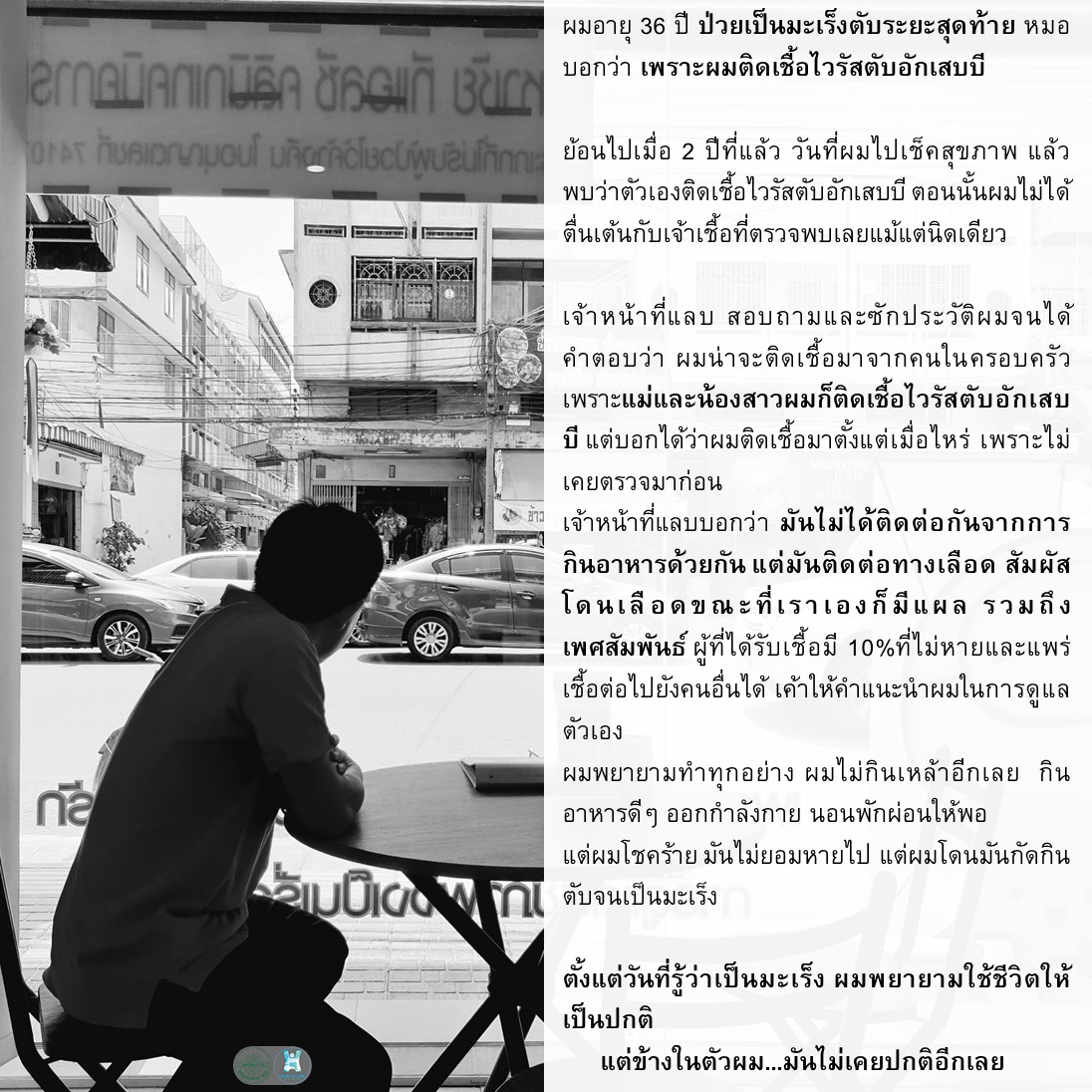 ผมน่าจะติดเชื้อมาจากคนในครอบครัว เพราะแม่และน้องสาวผมก็ติดเชื้อไวรัสตับอักเสบบี