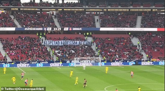 คืนก่อนในเกมส์ที่แอตมาดริดเปิดบ้าน ชนะ กิโรน่า ไป 2-0 กองเชียร์พันธุ์แท้ได้ทำป้ายประท้วงนักเตะ