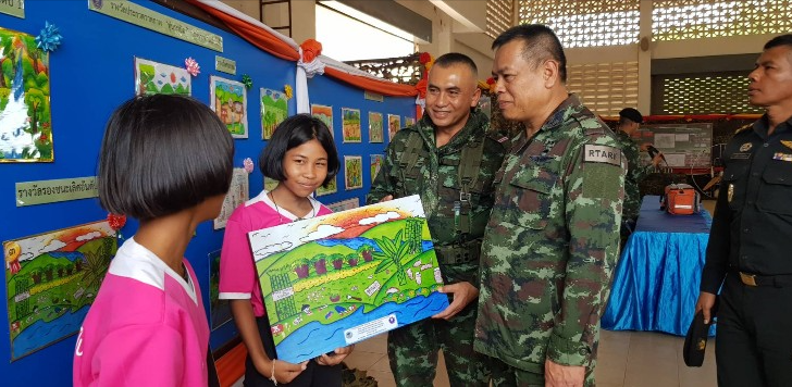 และในช่วงเช้าวันเดียวกัน พล.ต.ปิยพงศ์ กลิ่นพันธุ์ ผบ.พล.ร. 2 รอ. และ ผบ.กองกำลังบูรพา ยังมอบหมายให้ พ.อ.เสกสรรค์ พรหมศักดิ์ รอง เสธ.กกล.บูรพา และ รอง ผบ.หน่วยปฏิบัติการทุ่นระเบิดด้านมนุยธรรมที่ 1 (นปท.1) ศูนย์ปฏิบัติการทุ่นระเบิดแห่งชาติ, พ.อ.เฉลิม เนียมช่วย รอง กอ.รมน.จว.สระแก้ว ,นายศิริศักดิ์ ศิริมังคลา ปลัดจังหวัดสระแก้ว, นายอำเภอโคกสูง ข้าราชการและเจ้าหน้าที่ทหารให้การต้อนรับ พล.ต.สมาน ไตรสุธา ผช.ผอ.ศทช.ศบท.บก.ทท. ที่เดินทางมาเป็นประธานในงานวันรณรงค์การดำเนินงานด้านทุนระเบิดสากล ประจำปี 2562 และเยี่ยมชมนิทรรศการของ กกล.บูรพา , กอ.รมน.ภาค 1 ที่หอประชุมอำเภอโคกสูง จ.สระแก้ว