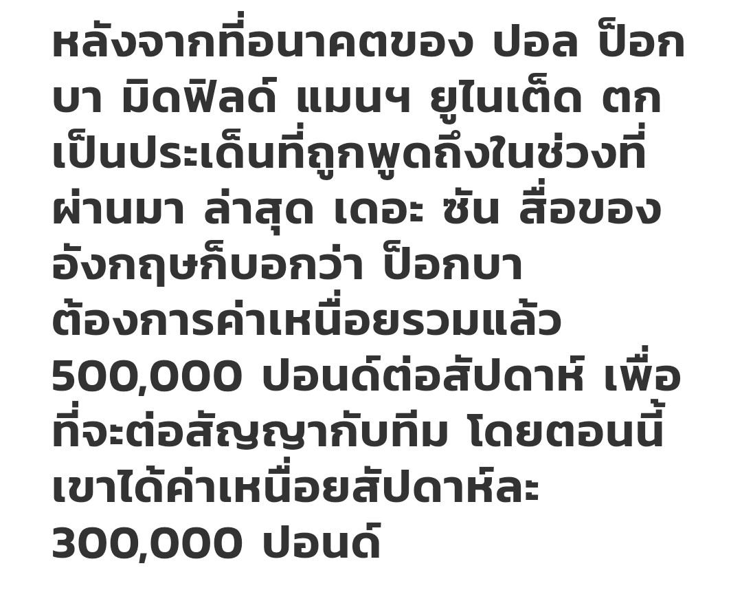 แฟนผีถูกใจสิ่งนี้ เมื่อป๊อกบามีแนวโน้มว่าอาจต่อสัญญา ประกาศว่าเค้ารักสโมสรแห่งนี้มากแค่ไหน แต่ขอขึ้นค่าเหนื่อยเป็น 500,000 ปอนด์ เทียบเท่าอเล็กซิส กองหน้าจอมเลี้ยงหมาระดับโลก ทั้งนี้แฟนมานอูคงอุ่นใจมากขึ้น เพราะป๊อกเป็นกองกลางที่มีแฟชั่นใหม่ๆให้ได้ติดตามตลอดมา และมีการป้ายบอลให้เพื่อนเนียนตาที่สุดในยุคนี้